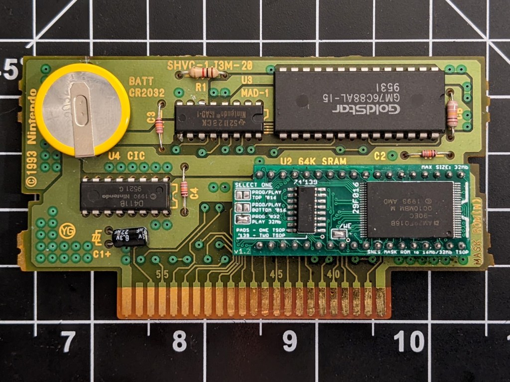 […] pretty expensive, so a cheaper option is to solder the TSOPs to the TSOP-to-SNES breakout board, like mine, and make an adapter to program the chips mounted on the breakout […]