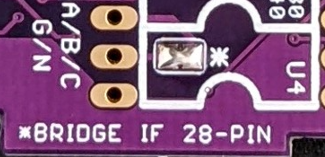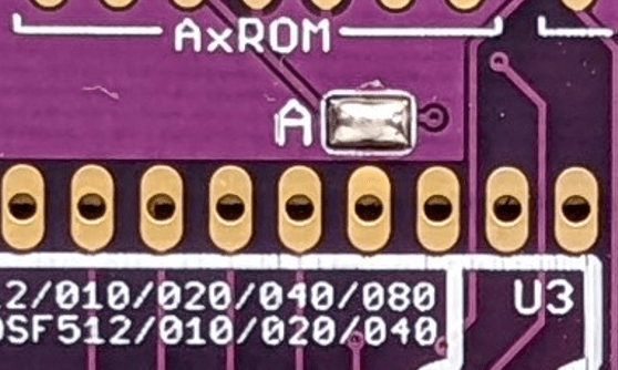 There’s a set of pads above pin 31 of U4 that must be soldered if you use a 28-pin device for the PRG ROM. These pads will be covered if using a 32-pin device: DO NOT solder these if you’re using a 32-pin device!